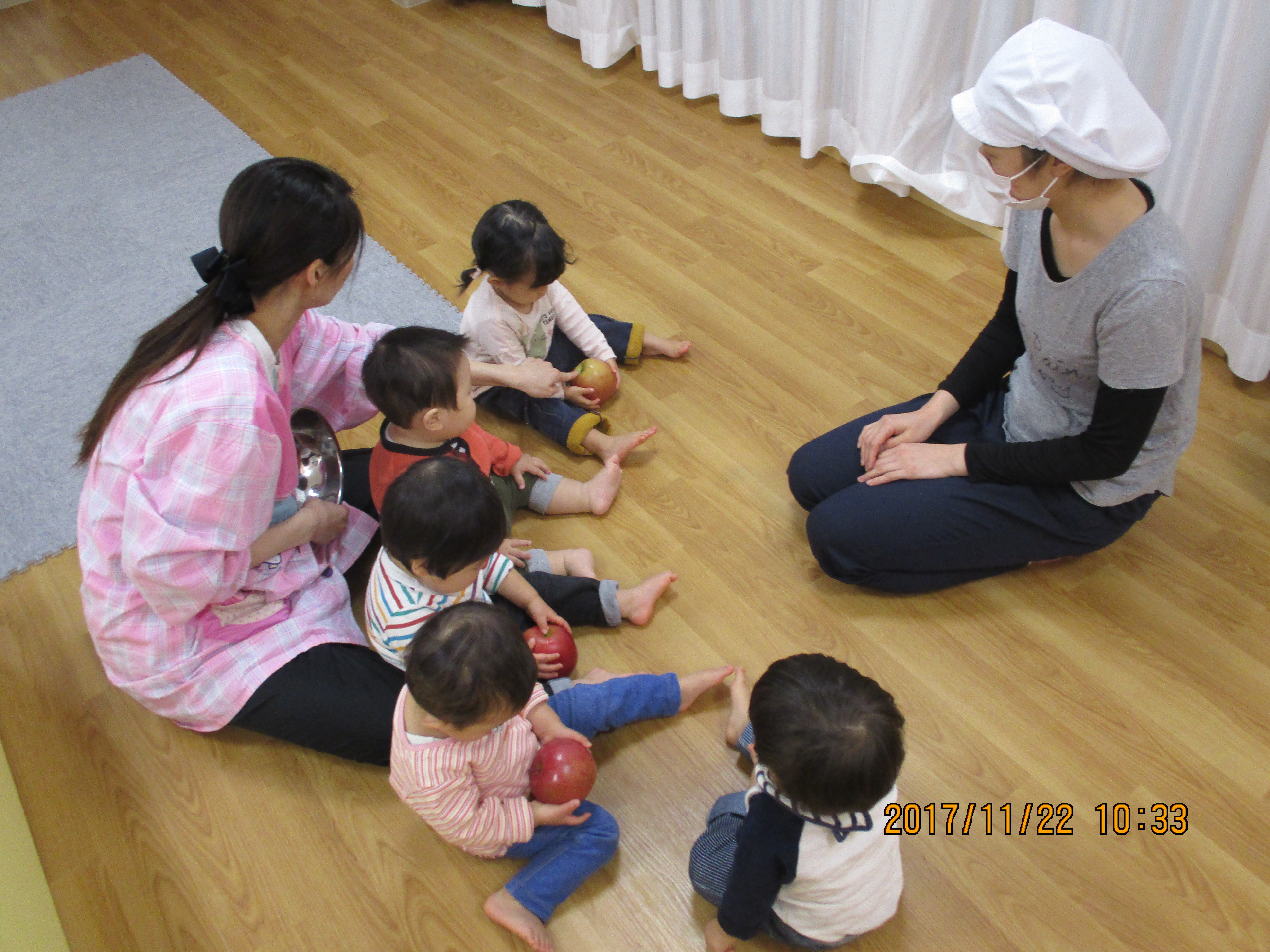初めは大きなリンゴを不思議そうな目で見ていましたが