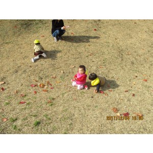 また、落ち葉やどんぐりを拾って遊んだりもしています(^^)