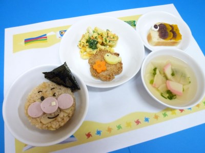 今年はアンパンマンのごはんに海苔の兜を飾りましたよ♪