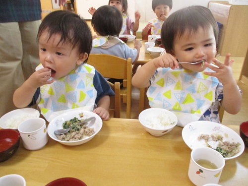 「使いたいけど難しい!」という子は、保育者や栄養士が付き、援助をしています。