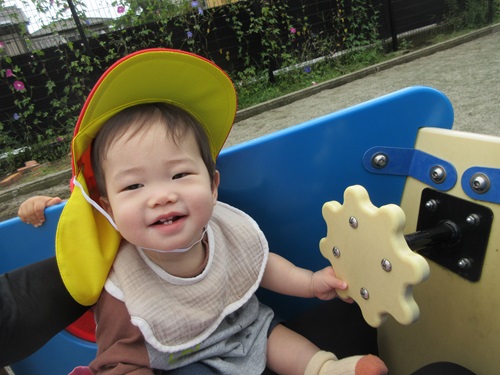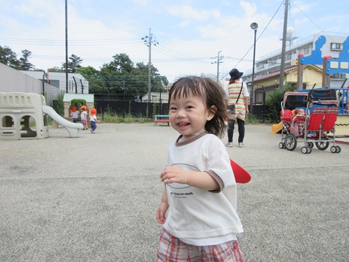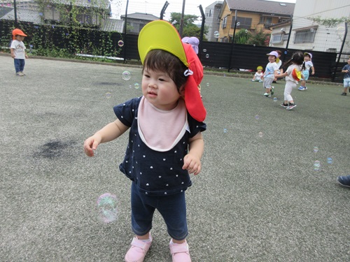 行動範囲も広くなり、人工芝の広場を走ったりシャボン玉を追いかけて活発に遊ぶ姿も見られました。