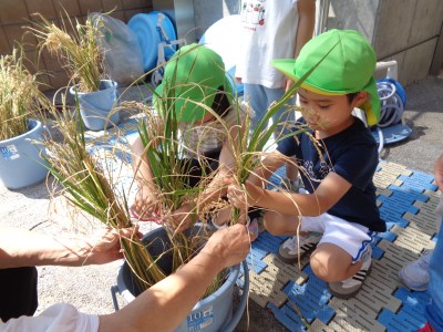 稲刈り・天日干し・脱穀・精米の工程を経験しました♪