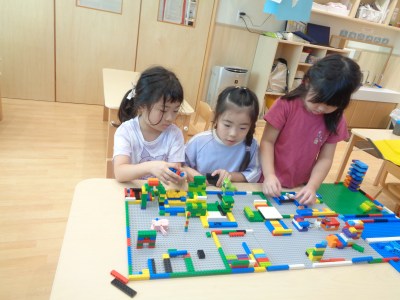 室内遊びではレゴブロックやラキューで保育園ごっこを楽しんでいます♪