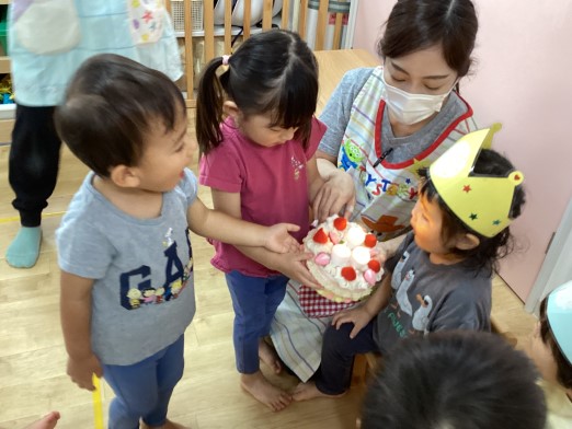 9月がお誕生日のお友達は、ひよこ組、うさぎ組、きりん組から1名ずつでした。