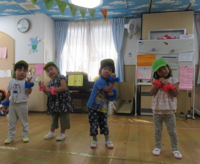 最近はみんなで手を繋いで円になると、「ピザ―!」といって楽しんでいます!笑