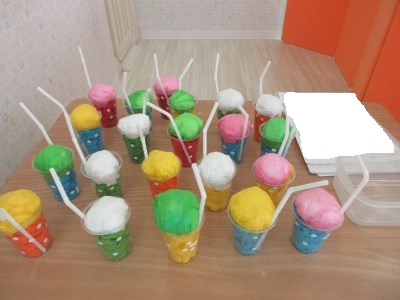 お店が決まったら品物作り‼きりん組さんで美味しそうに見えるように考えながら作りました(^^)