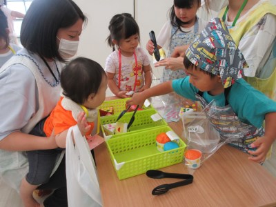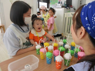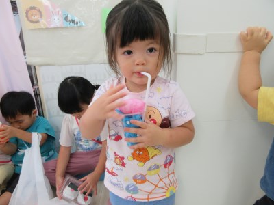 ひよこ組のお友だちも嬉しそうにジュース屋さんでジュースを選びます(*^^*)いろいろな味のジュースに迷っちゃう♡