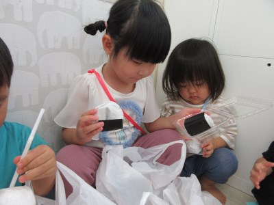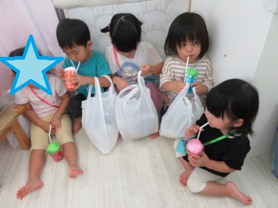 買ったジュースをその場で飲む真似をするお友だちも多く、エコバッグの中の品物が増える度に子どもたちのテンションはどんどん盛り上がります☆