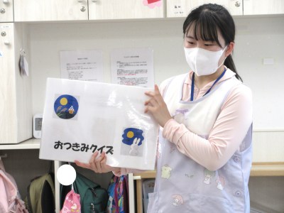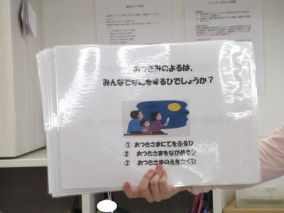 子どもたちには「おつきみってなんだろう??」を、絵本やクイズを通してお話しをしました★