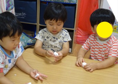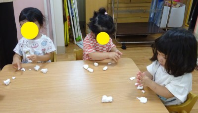 ちぎってみたり、平らにしてみたり、こねこねしてみたり。