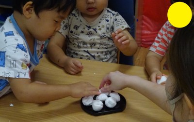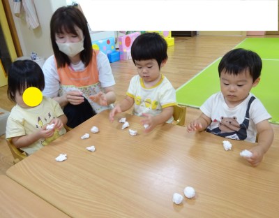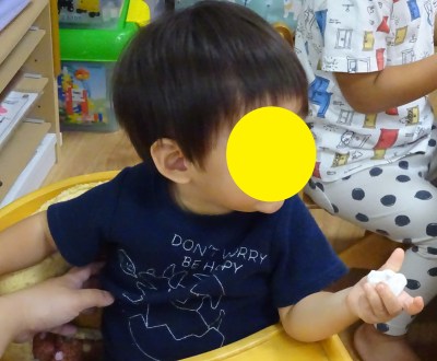 0歳児の友だちも先生と一緒ににぎにぎしましたよ♡
