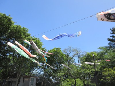 近くの公園では、こいのぼりが元気に泳いでいます。