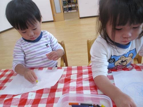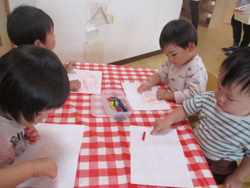 最近は、お絵描きが好きで、「かきかきするー!」と言い、好きな色のクレヨンやクーピーを使い、紙いっぱいに、のびのびと表現して楽しんでいます。