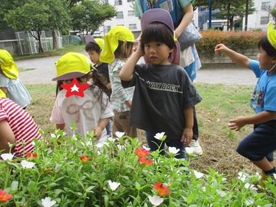 久しぶりの公園に大喜びで、花や自然に触れたり散策を楽しむ子どもたちです。