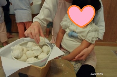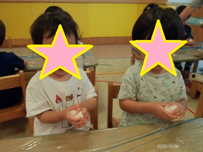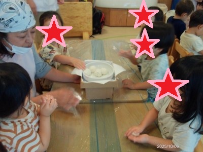 その日に合わせて2歳児クラスのみんなとお月見団子づくりをしました(^^♪