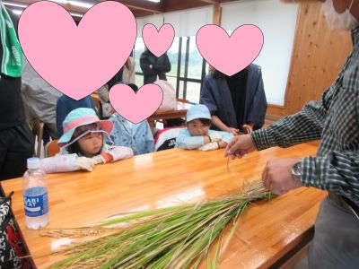 さっそく「新しい村」の方々から刈った稲の結び方を教えてもらいました(*^^*)