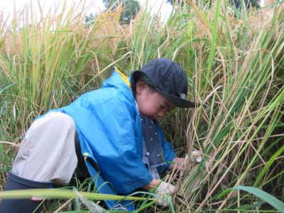 カマを使った稲の刈り方も教えてもらい、いざ実践!!★