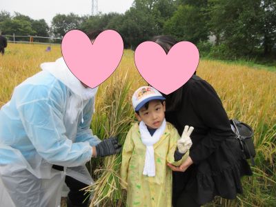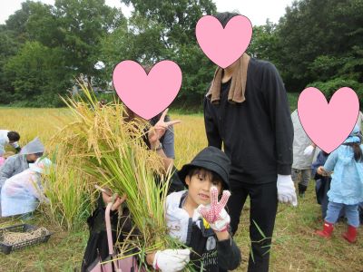 沢山稲をとることができ嬉しそうなきりん組さんです(*^^*)♪♪