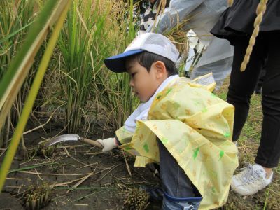 今回は先日、年長きりん組さんが行った稲刈り体験の様子を配信させていただきます!!