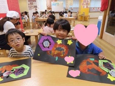 お部屋に飾り、ハロウィンでお菓子をもらえたり仮装をするのを楽しみにしている子ども達でした!!♪♪