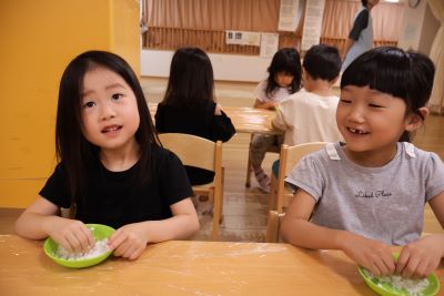 白玉粉に水を自分たちで加えてこねていき、ひとまとまりにしました!!
