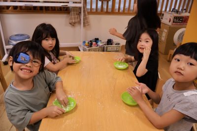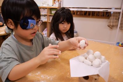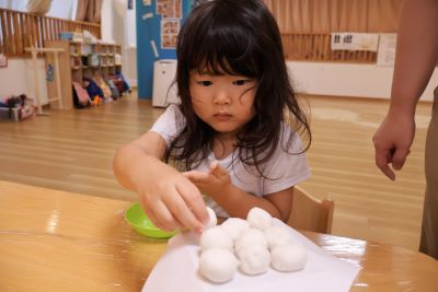 ぱんだ組さんは今月の食育でお月見団子づくりを行いました!!