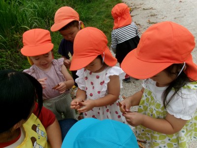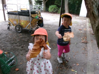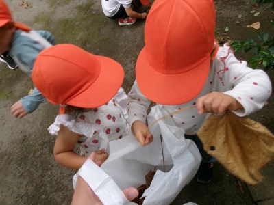 最後はどんぐりや葉っぱを収集して園に持ち帰りました。