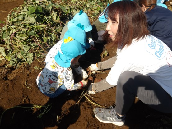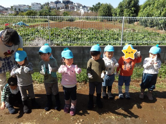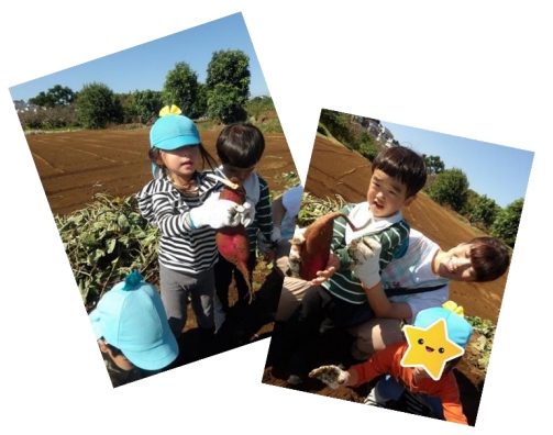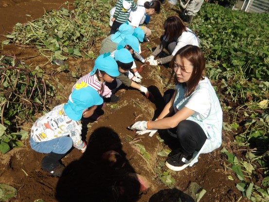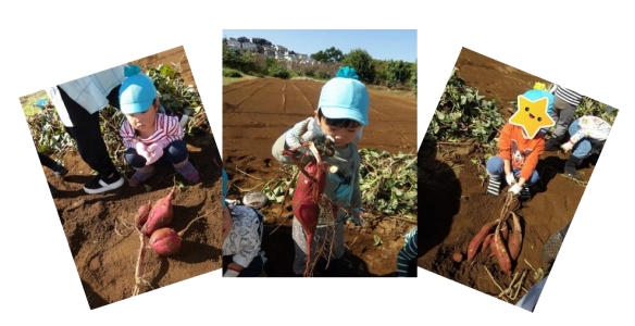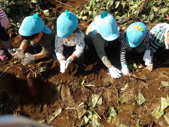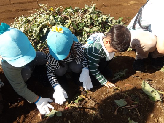 今年も市ヶ尾幼稚園の畑にお邪魔して、きりん組さんがお芋を掘らせていただきました。