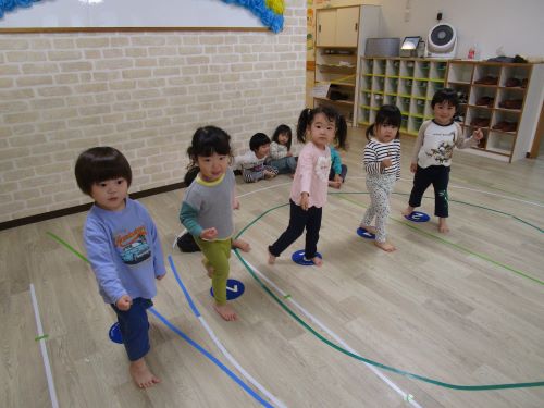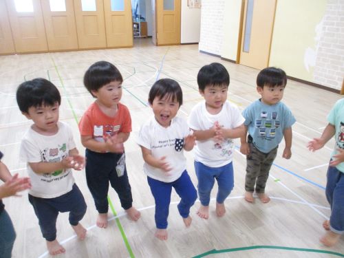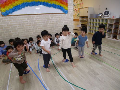 運動会ごっこではみんなで1つの円になり、内側を向いて踊りました。