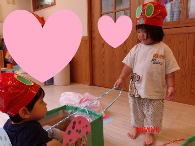 ダンボールカーに乗ることよりもお友だちが乗るダンボールカーを引っ張ることを楽しむ子もいました( *´艸`)