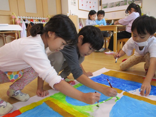 すると「にじ組だから虹色にしたい!」「そらいろだから水色と青色を使いたい!」と意見があがっていました。