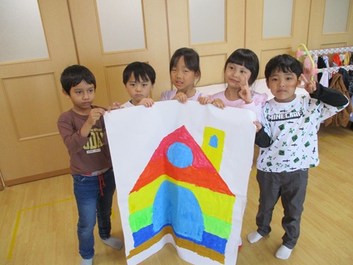 大きな家の製作では、はじめにどんな家を作るかを話し合いました。