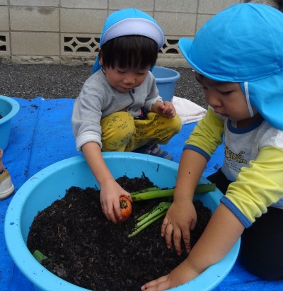 2歳児クラスのお友達が、他の野菜たちと共に、