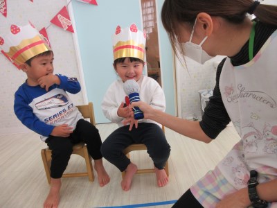 うさぎ組さんのお友だちも緊張していましたが、先生のお膝の上で安心してインタビューに答えてくれます(^^)/