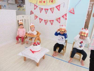 今月のお誕生日のお友だちは、きりん組さんから2名、うさぎ組さんから1名、ひよこ組さんから1名の計4名のお友だちです☆