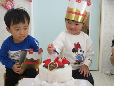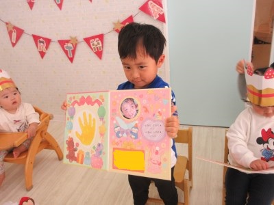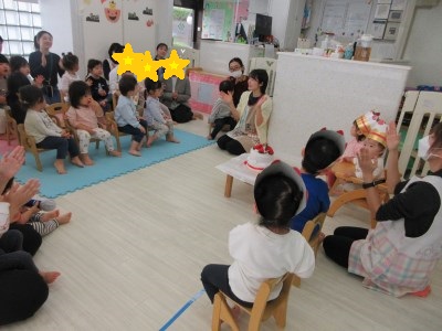 いつもと違う雰囲気に少しソワソワしながらも、しっかりとお誕生日のお友だちをお祝いしてくれる子どもたちです(^^♪