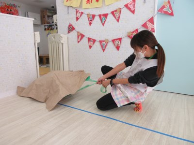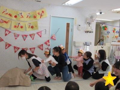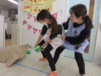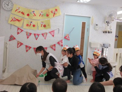 最後はひよこ組さんのお友だちにも手伝ってもらって引っ張ると…