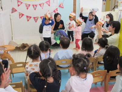 今回は保育参加の週でもあったので、今日のお誕生日会にはきりん組さんの保護者の方にも一緒に参加してもらいました!