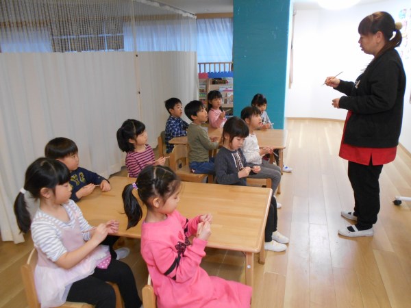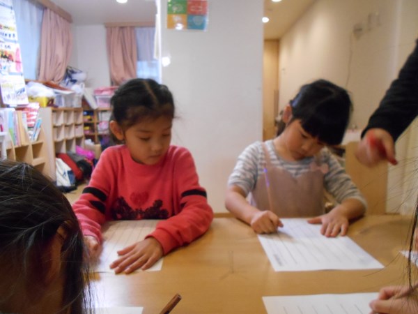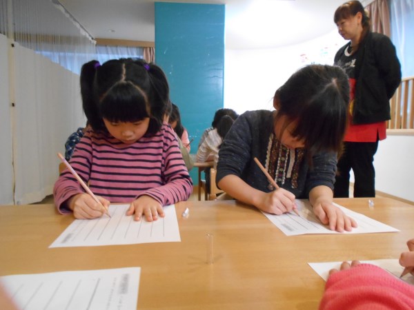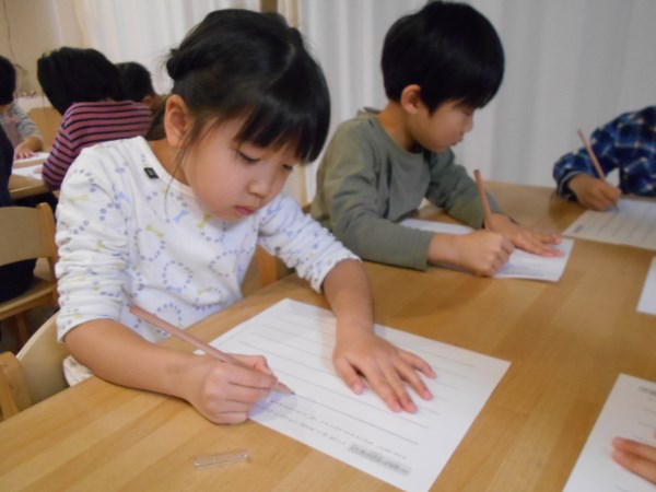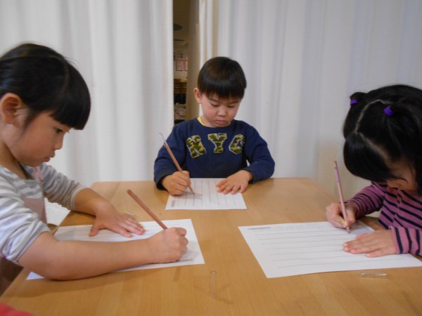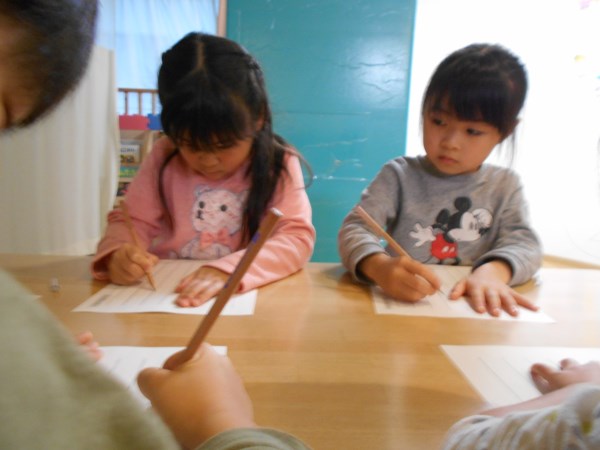 きょうは、きりんぐみさんが かきかた のれんしゅうを