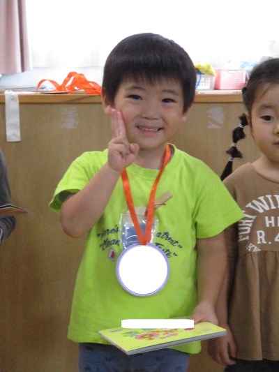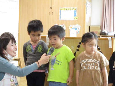 先生からのお楽しみは、箱の中にあるものを触って当てるクイズをしました。見ているお友だちからどんな感触なのか聞いて一緒に考えていました☆