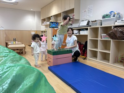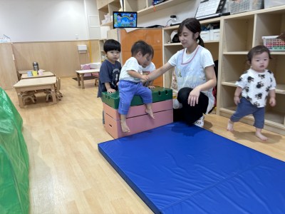 おおきなトンネルではハイハイしたり腰を曲げながら歩いてみたり工夫しながら楽しんでいます♪