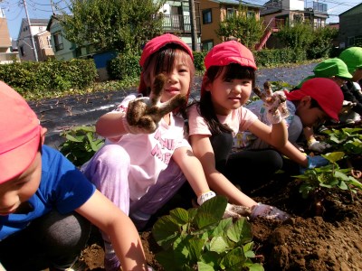 先日、4歳児クラスと5歳児クラスがお芋ほりに行きました。