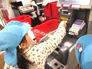 一緒に買い物へ同行した先生からヒントをもらいながら買い物を進めます。