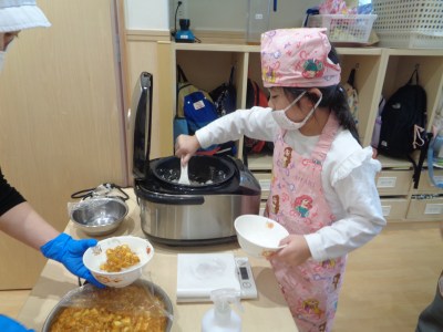 自分たちで炊いたご飯はとても美味しかったようです♪
