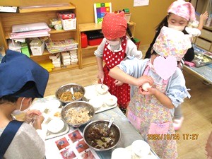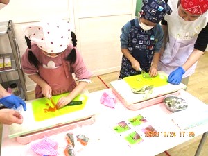 会話も楽しみながらきりん組のクッキングは大成功で終了しました!!