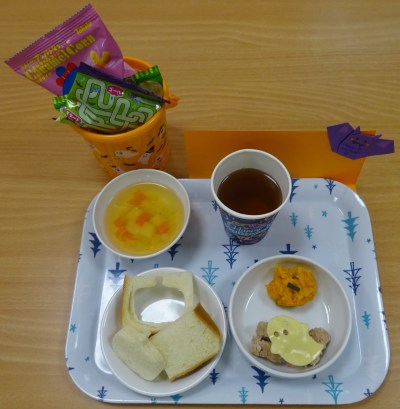 尚、給食は、可愛いおばけチーズハンバーグでした♡