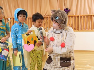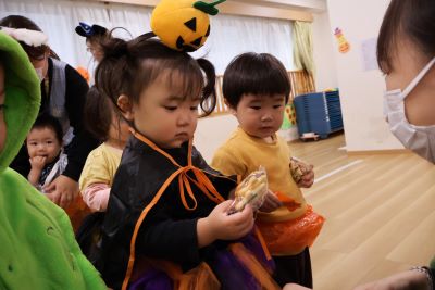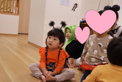 幼児クラスのお友達も、ハロウィンの絵本を見た後に