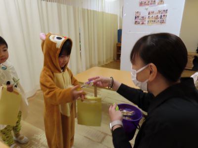 ゲームに参加した後は、そのカボチャを持って園長先生の所へ・・・