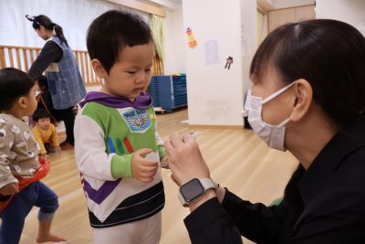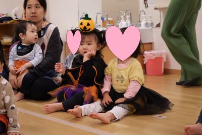 そして、一歳児こあら組さんはハロウィンのお話を聞いた後に、