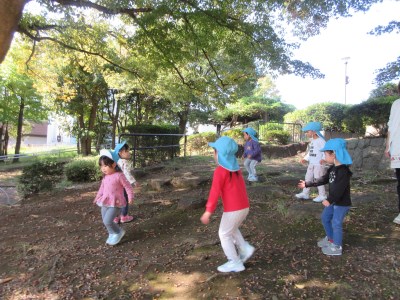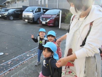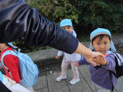 お弁当や水筒が入っている分、お芋掘りの時よりも少しリュックが重いのですが、楽しみの気持ちが上回っているので、全然へっちゃらなきりん組さん!
